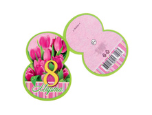 Открытка-шильдик "8 Марта" вырубка, розовые тюльпаны 4812078 3р/шт