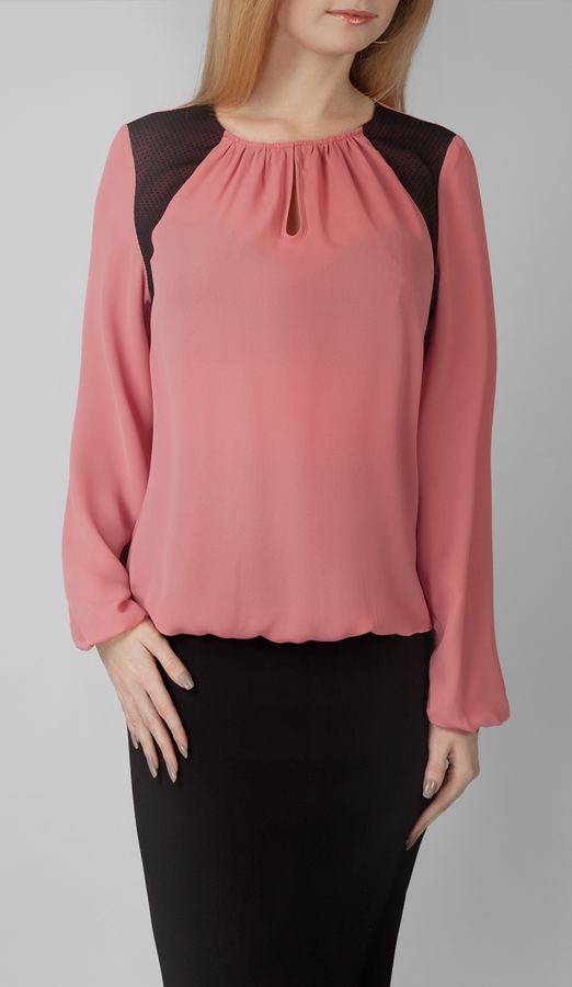 Лёгкая блуза элегантного фасона. Эффектная деталь блузы Мартина - это оригинальный верх полочки, где вырез горловины с мелкими присборкам подчёркнут контрастными вставками и кокетливо дополнен вырезом-"капелька", застёгивающимся на "крючок". "Воздушный" рукав и плавноспадющий низ блузы присобраны на мелкую резинку.
