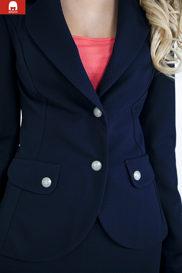ЖАКЕТ ВЫПОЛНЕН ИЗ ПЛОТНОГО ТРИКОТАЖА, БЕЗ ПОДКЛАДКИ, УКРАШЕН КНОПКАМИ. ЮБКА 08-152.
