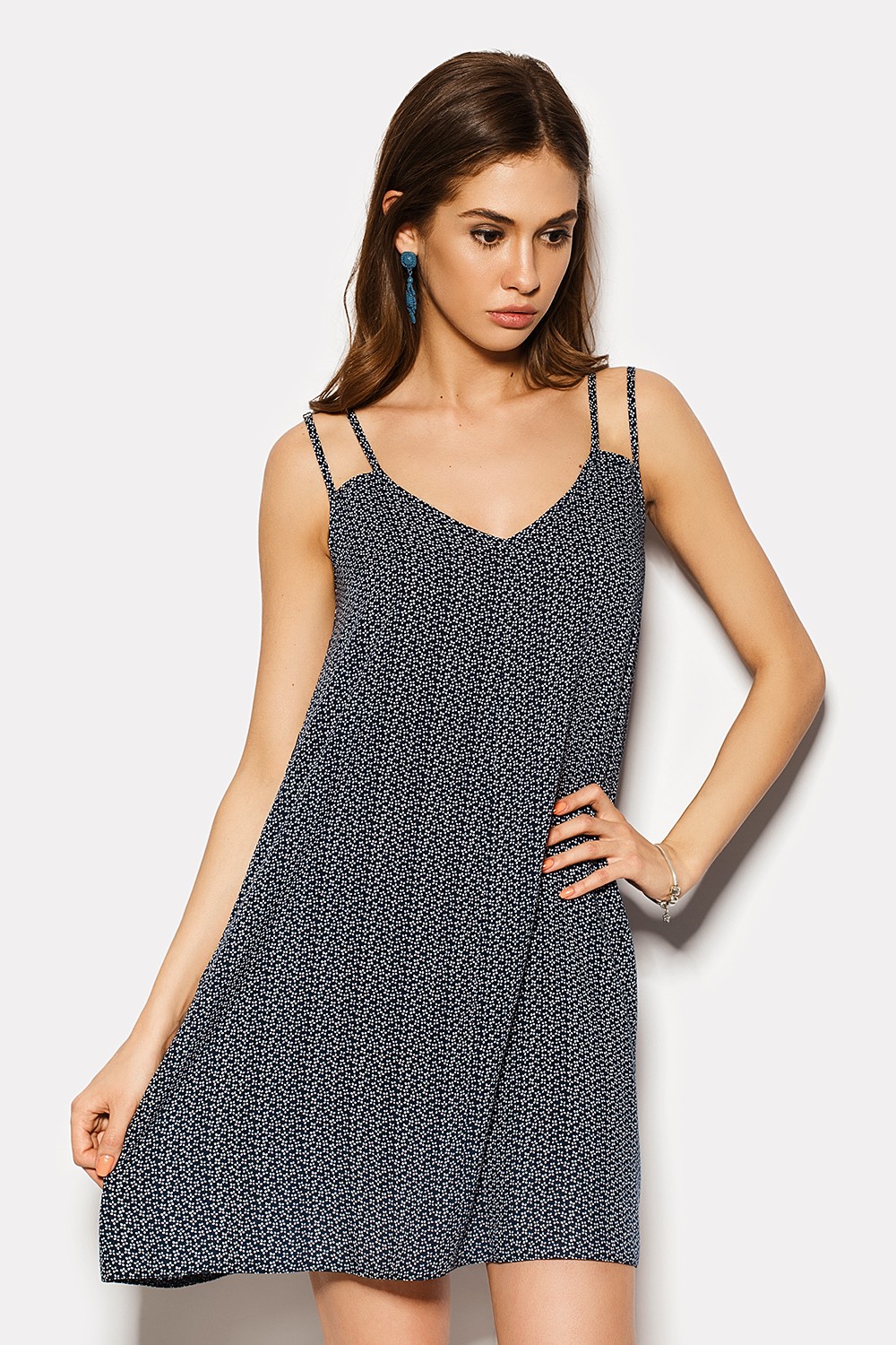 Утонченный вкус и утонченный силуэт фигуры никак не могут существовать друг без друга. Силуэт платьяALLEGORIA убедит тебя в этом. Прямой фасон не говорит об его угловатости, наоборот, он подчеркивает стройность женской фигуры под мягкой штапельной тканью. Красивый V-образный вырез повторяется и на спине. Он создается за счет тонких бретелек, одни из которых становятся продолжением выреза, а другие рукава. Все это, а также синий цвет платья с мелким принтом цветов демонстрируют утонченность и изящество девушки.
