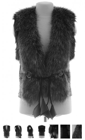 Стильный жилет из стеганной пу-кожи. Модель украшена иск. мехом под натуральную чернобурку.