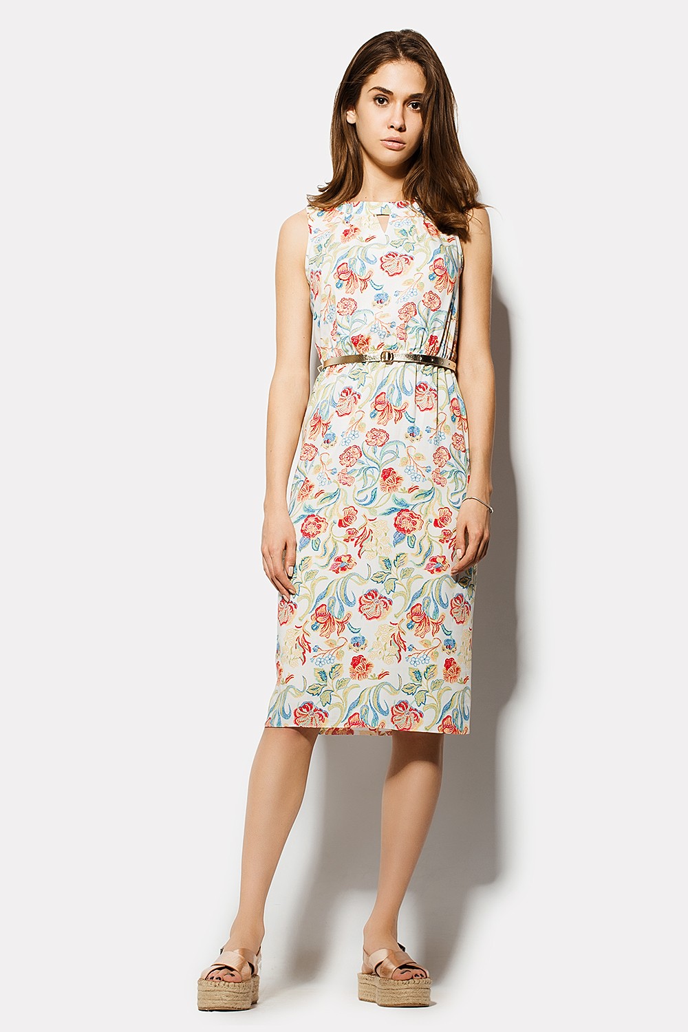 DAIKIRI - стильное платье для девушки, которая собирается в незабываемый отдых на прекрасном побережье. Мягкая ткань и цветовая гамма позволяют облегчить воздействие солнечных лучей и оставляют на коже лишь прохладное прикосновение. Узор цветов на белом фоне выглядит женственно и немного наивно, а вырезы треугольником на груди и спинке платья показывают твою игривую сторону. Передний вырез гораздо меньше, чем задний; это позволяет при необходимости скрыть его под кофтой. Под тонким пояском на талии спрятана узкая вшитая резинка, которая помогает подчеркнуть силуэт.