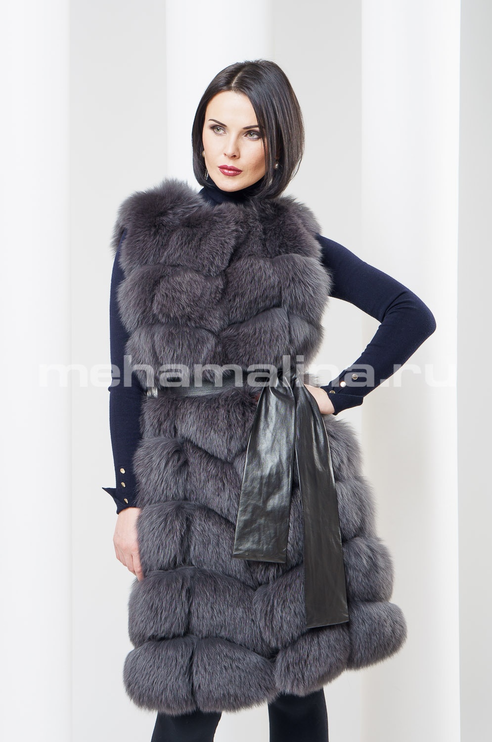 Жилет из меха песца, удлиненный. Вид ворота: "Шанель", длина 90см