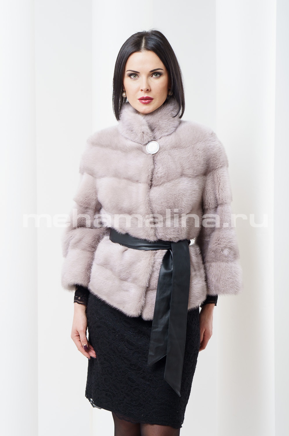 Шуба из норки дымчатого цвета, укороченная. Воротник стойка. Длина изделия 65см..