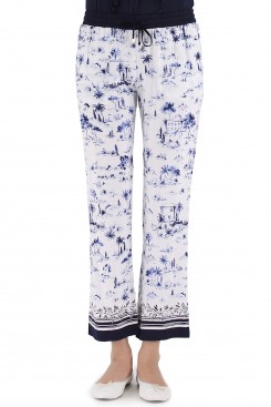 Пижамный тренд - одна из главных тенденций этого сезона. Именно поэтому подобные летние брюки должны оказаться в Вашем гардеробе! Модель выполнена из вискозного купонного полотна с морским узором. По бокам расположено два кармана. Пояс изделия имеет эластичную вставку-резинку и завязку на тонкие шнуры с кисточками.