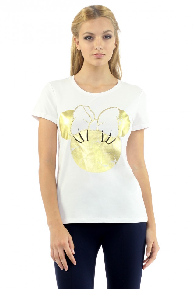 Специально для всех поклонников классической мультипликации Уолта Диснея - коллекция одежды Disney от BAON. Эта футболка выполнена из хлопкового трикотажа с добавлением эластана, благодаря чему отличается гладкостью, прочностью и износостойкостью. Модель украшена сиющим и переливающимся металлическим принтом. Рисунок дополнительно декорирован стразами в тон основного цвета.