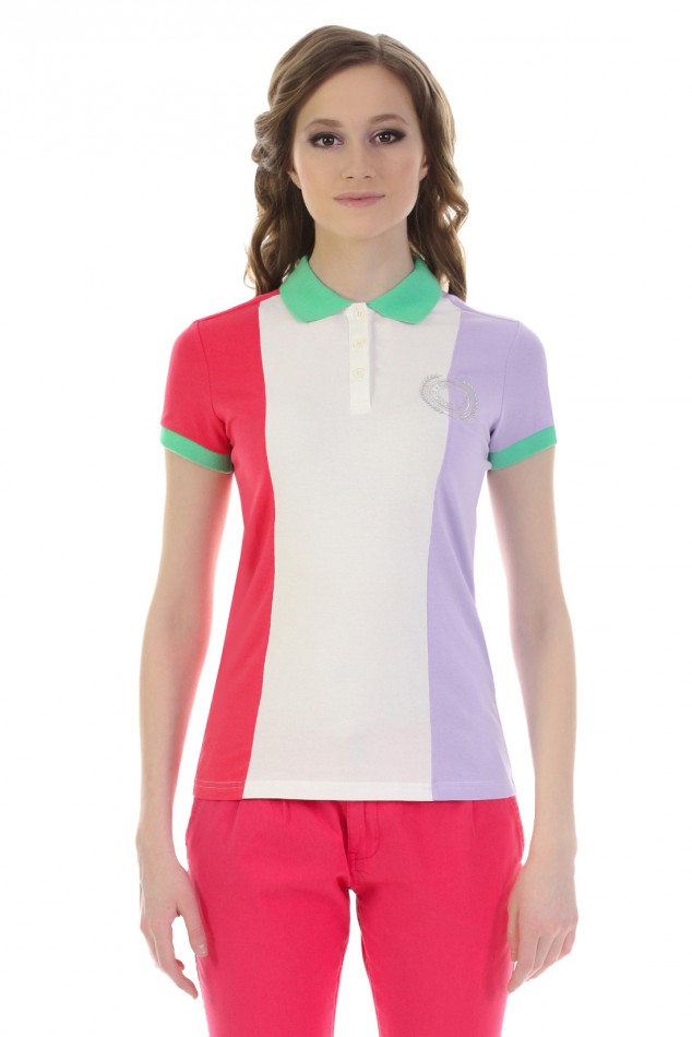Яркое поло, выполненное в модном стиле color blocking'а, идеально подойдет для создания спортивного образа. Мягкий трикотаж изделия необычайно комфортен в ношении. Модель декорирована вышитой эмблемой на груди.