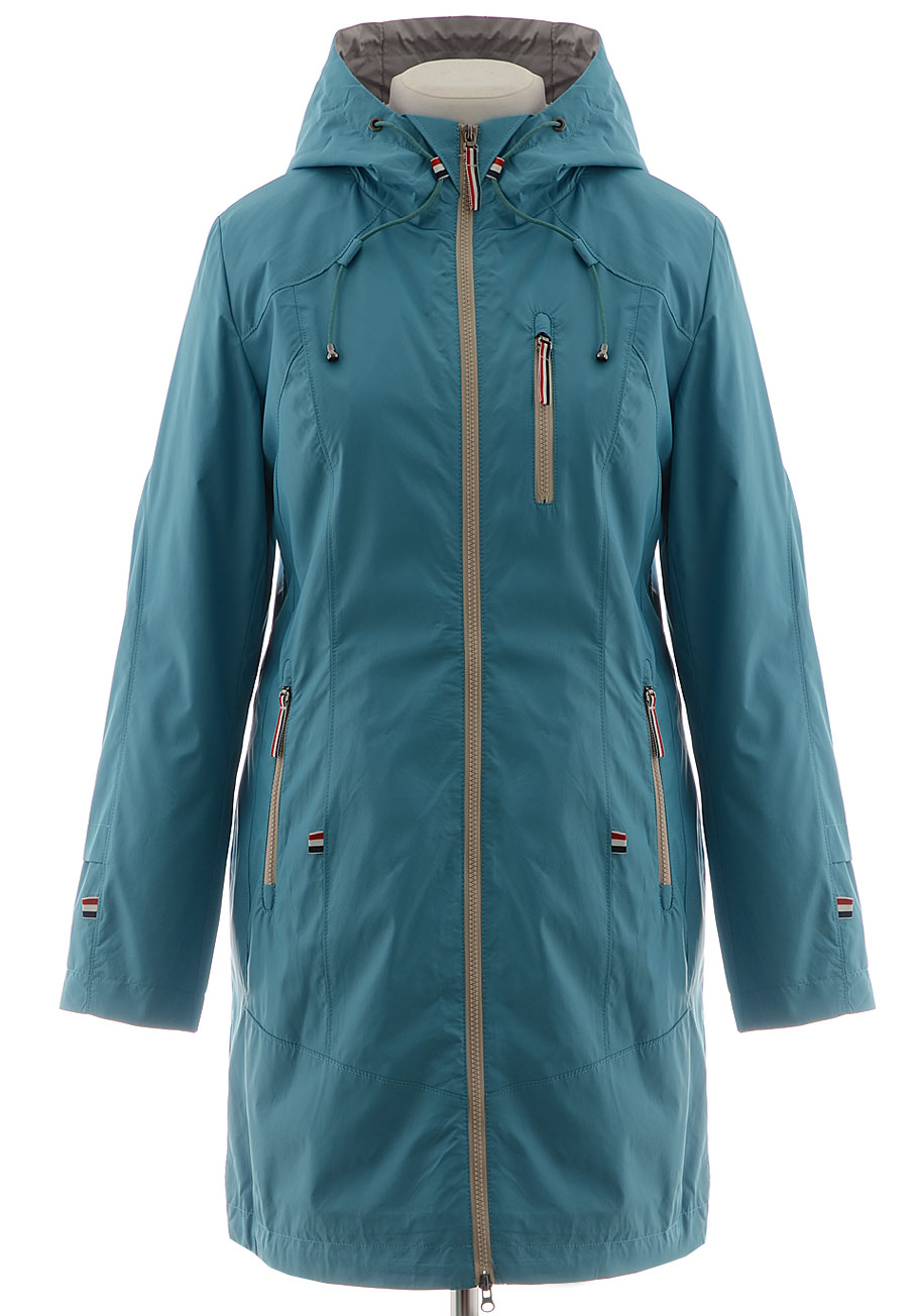 Стильный плащ с центральной застежкой на молнию и капюшоном. По низу изделия имеется кулиска. Немного маломерит.