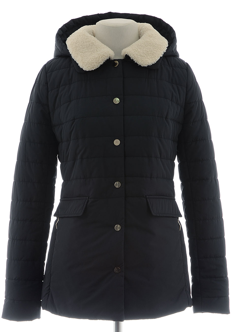 Удобная демисезонная удлиненная куртка с двойной застежкой (на молнию и кнопки). Воротник декорирован иск. мехом, имитирующим стриженную овчину (мех отстегивается). Немного маломерит.