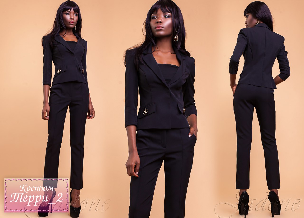 Женственный костюм классического кроя. Прекрасно смотрится как с рубашками и блузами, так и самостоятельно! Самодостаточный костюм, который станет идеальным дополнением Вашего неповторимого стиля! В зависимости от аксессуаров костюм может быть как слишком деловым комплектом, так и подчеркнуто сексуальным. Карманы декорированы оригинальной фурнитурой под золото. В костюме Вы непременно будете радовать окружающих своим презентабельным внешним видом.