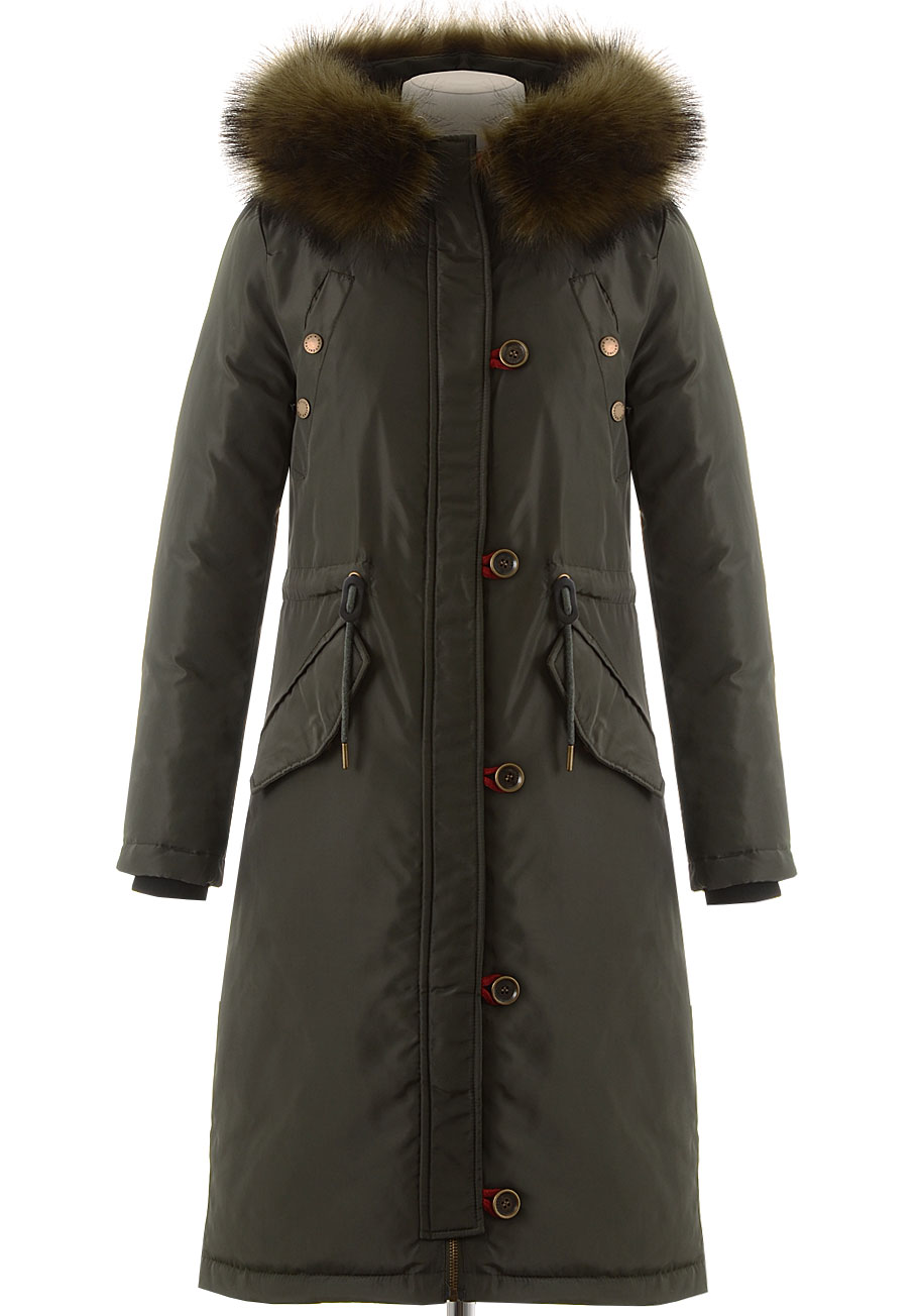 Стильная удлиненная парка с застежкой на молнию и пуговицы. Рукав с трикотажным манжетом. Капюшон декорирован иск. мехом. Кулиска по талии (от ворота 39-40см) и по низу изделия. Подходит до -20. Воротник не плотно облегает шею, при непогоде необходимо наличие шарфа. Фабричный недостаток: слабо пришиты внутренние пуговицы на капюшоне, на которые пристегивается мех; для комфортной носки требуется укрепить-перешить. Среднее качество изделия.