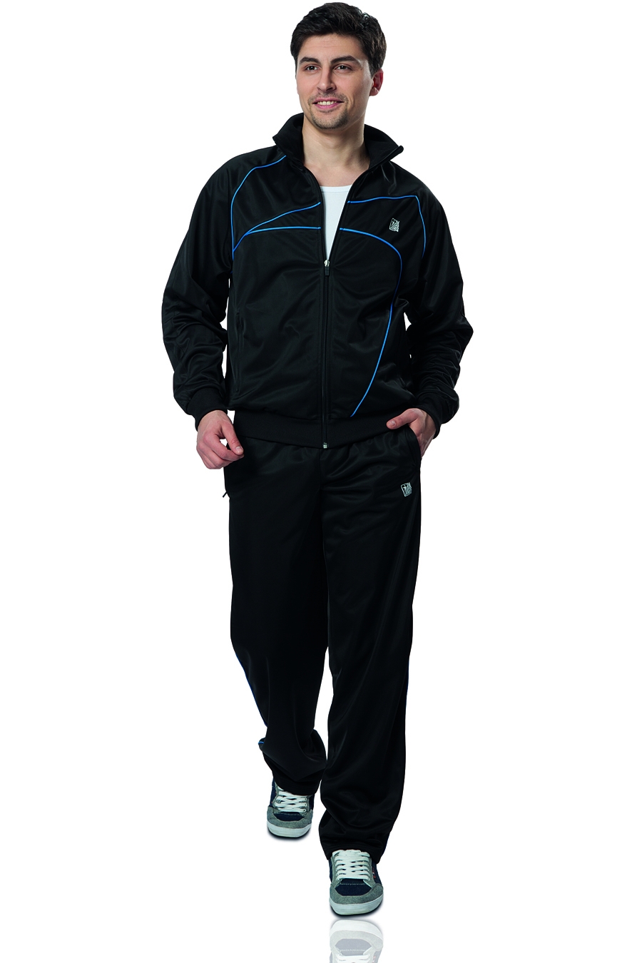 Брюки прямого силуэта. По боковым швам – кант. Боковые карманы на молнии. Пояс с эластичной тесьмой, регулируемый шнуром.Термотрансфер логотипа.